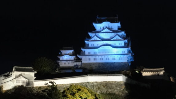 自転車の旅 目的地が無い西に向かって走る自転車旅 ⑩ 3日目 夜の姫路城と姫路駅前の風景、そして最後の夜 桜門橋を渡り城内に入ると、夜の闇に浮かびあがる姫路城が近づきます。青白い姿を見せる天守を守るように白く輝く櫓、昼間とは違う顔を見せる姫路城、来てよかったと一人で感激。姫路駅前に戻ると広大なアーケード街が広がり賑やかな夜に一人飲みの最後の夜 2026.02.01 自転車の旅