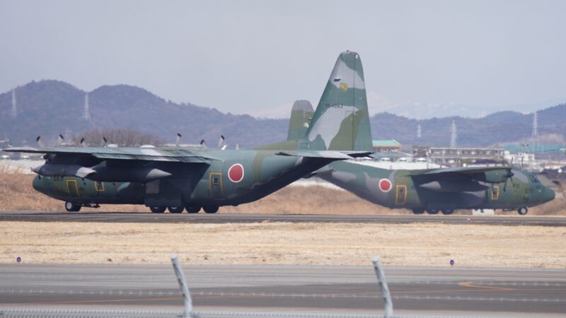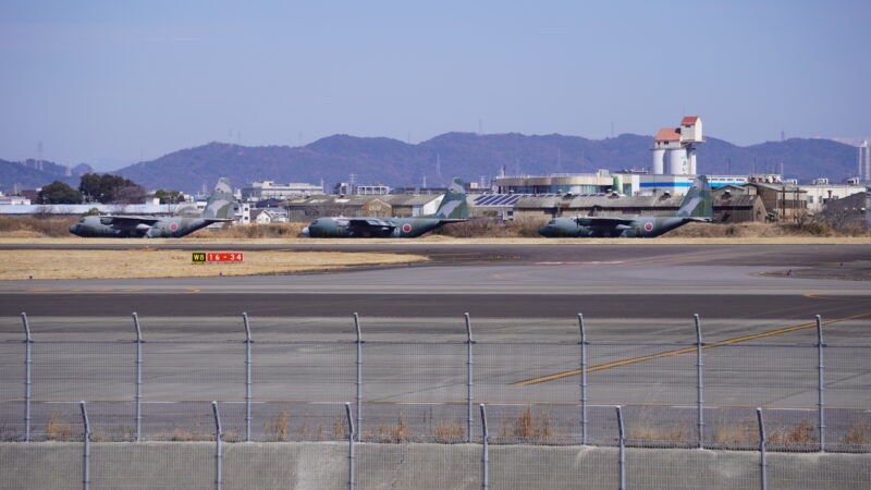 滑走路の北側にはC-130Hが3機並んでいます。