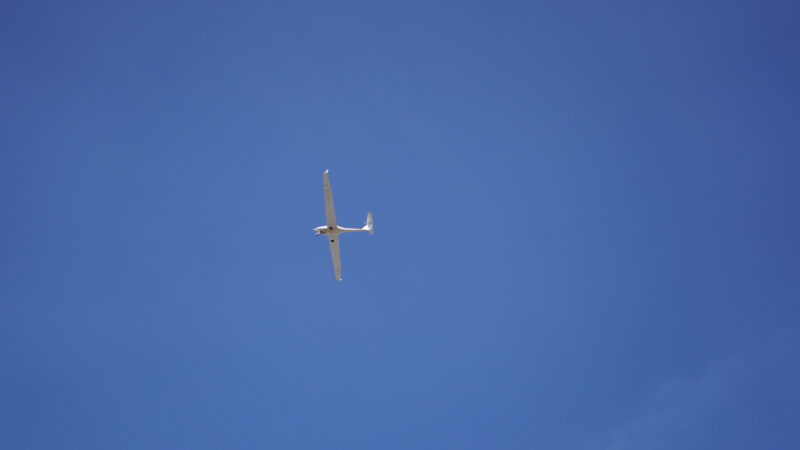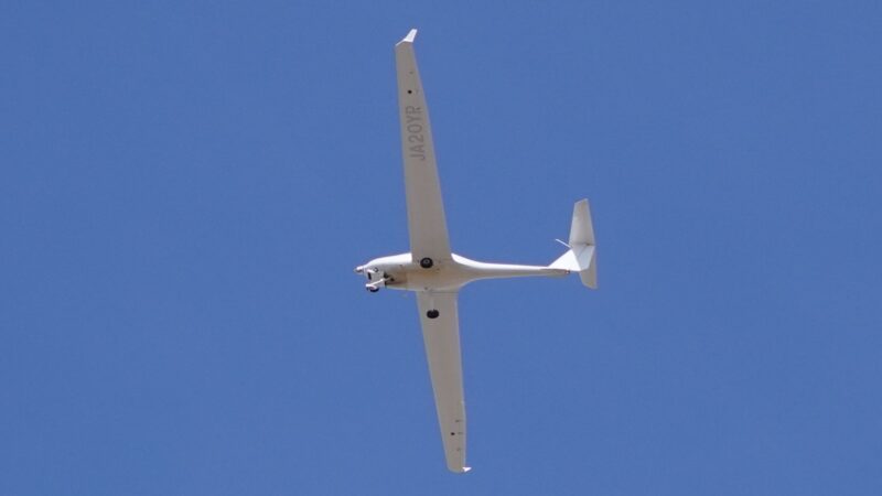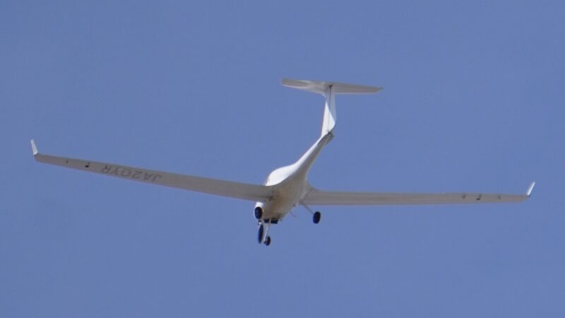 なんだかグライダーみたいな翼の長い飛行機が飛んでます。な~んだ