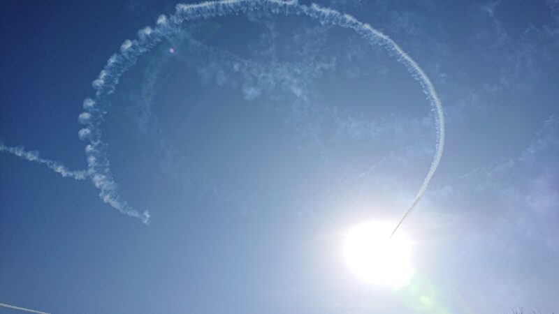 空の上では翌日の本番に備え、飛行展示の予行がすでに始まっていました。