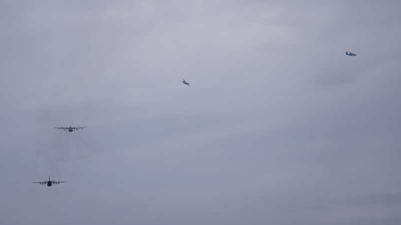 大きな機体が軽々と方向を変えて飛んでいく機動飛行