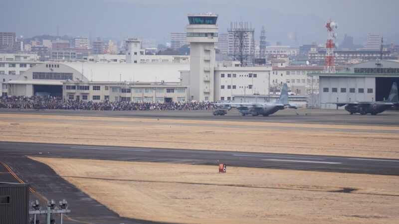 基地内には見学の人たちがたくさんいるのが目視出来ます、いつか基地内の航空機地上展示も見たいけど、あんまり人混みが好きじゃないんだよね・・・。