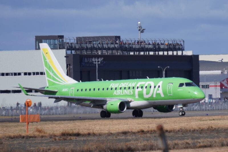 機体のカラーはティーグリーン、本社のある静岡県はお茶の産地だからかな?。(JA08FJ)(2026.2.28 10:32)