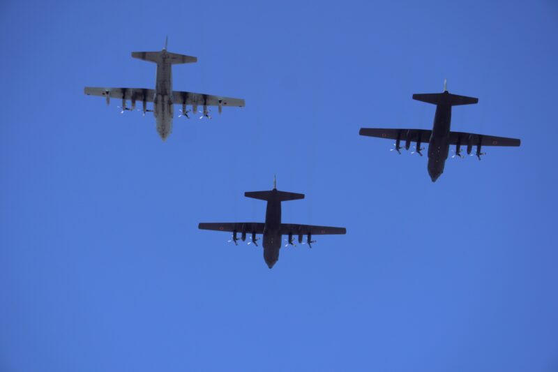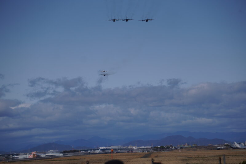 直後にCー130の3機編隊が後を追いかけて行きました。(2026.2.28 11:36)