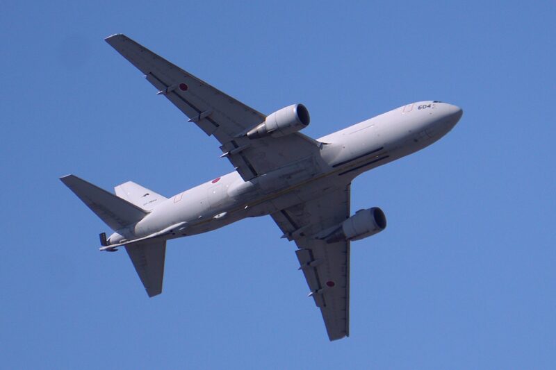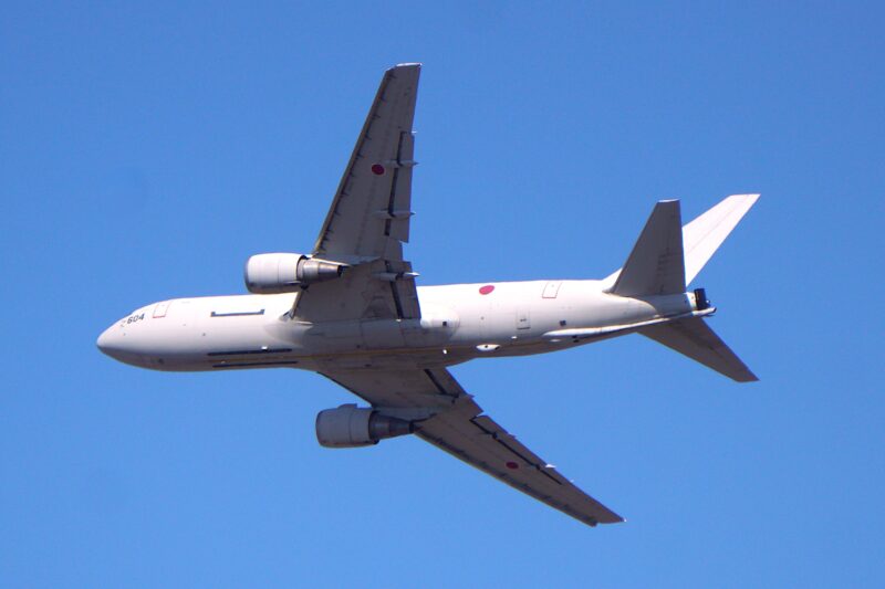 令和3年度から運用試験を実施し、令和6年度から本格運用を開始した空中給油機、愛称は「ペガサス」、民間航空機ボーイング767に空中給油システムの搭載及び貨物搭載のためのフライトデッキ拡張等の改修を施している(2026.2.28 9:27)