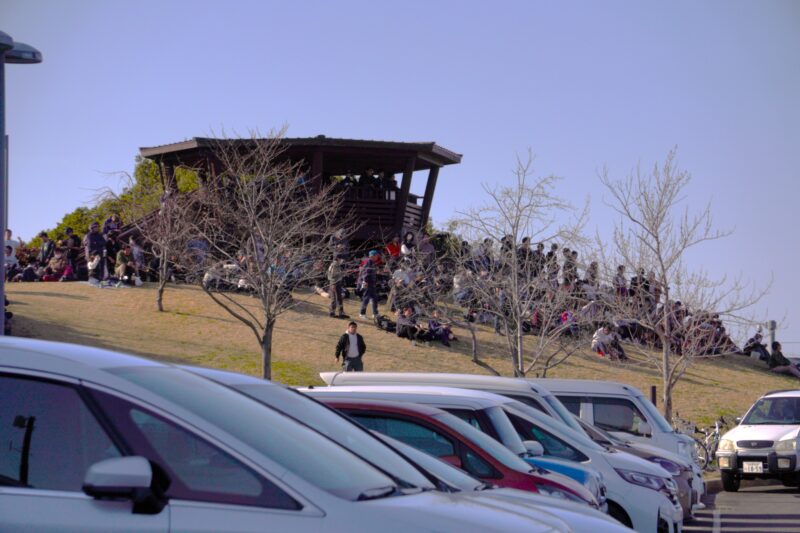 いつもはほとんど人のいない神明公園の展望台も、今日は航空ファンでいっぱいです。