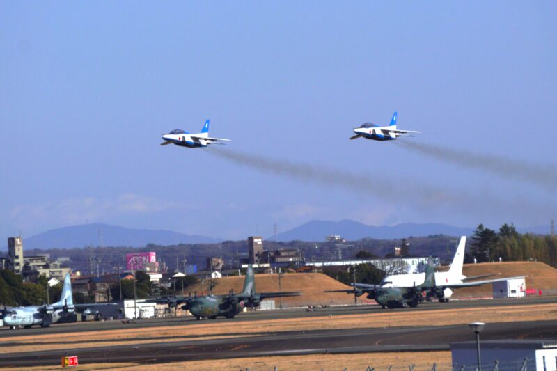 ブルーインパルスが動き出しました。急に周りのカメラマンがざわつきます。(2026.3.1 15:27)