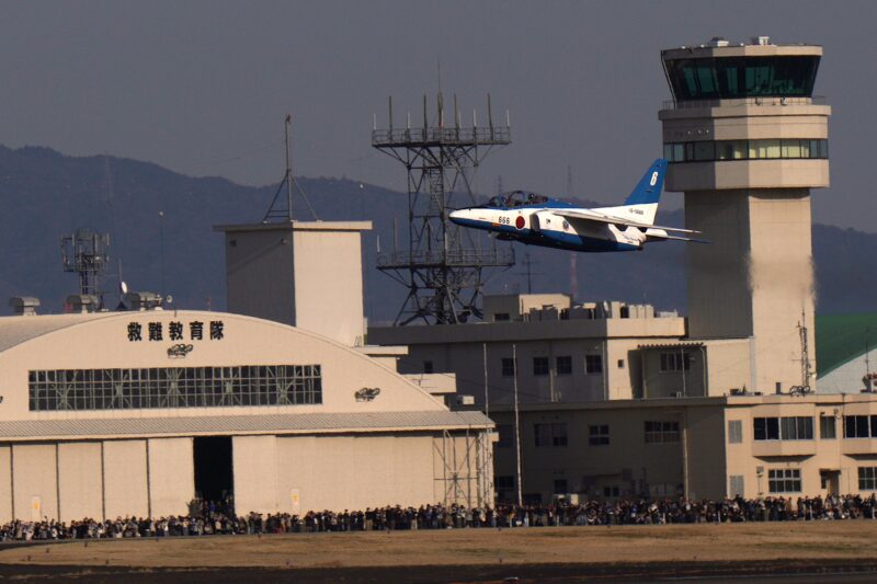ブルーインパルスの飛行展示も終わり、よその基地から来てくれた外来機のお見送りをするために空港の南側から空港西側の神明公園に移動しました。今年の人出は過去最高の6万6000人で、空港の周囲は大混雑、車道も歩道も見たことないくらいの人と車で大渋滞でした。