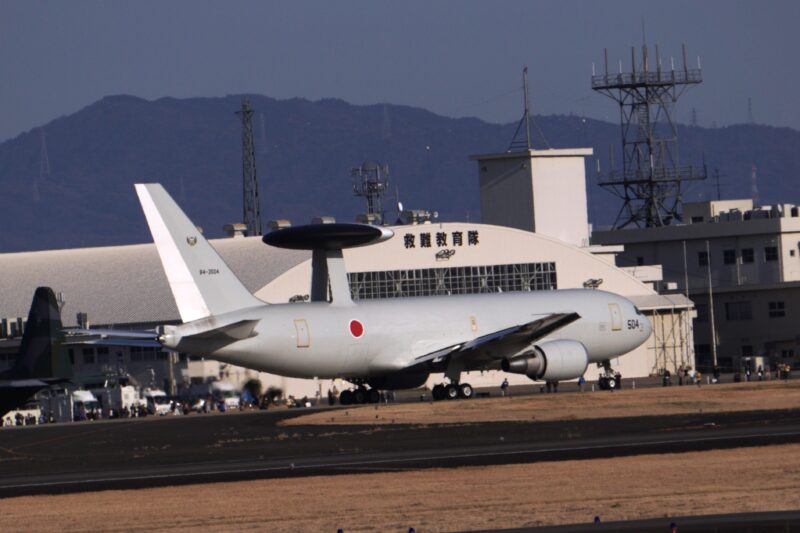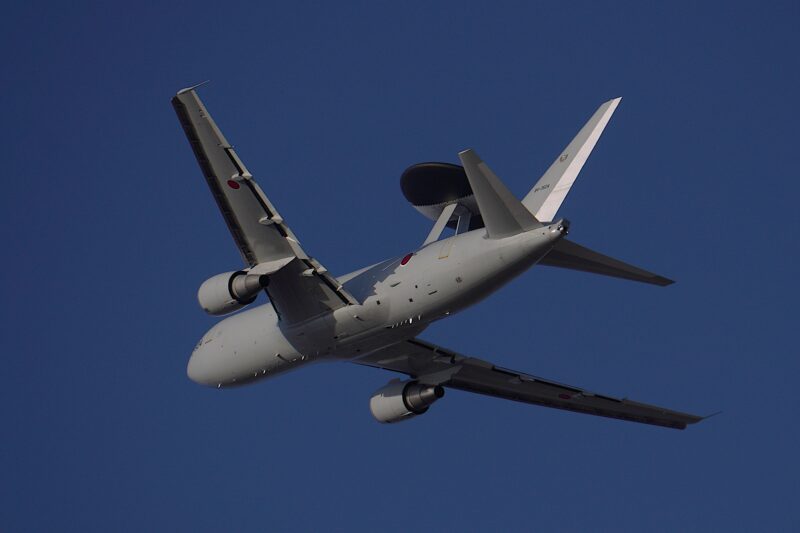 早期警戒管制機(AWCS・エーワックス)は「Airborne Warning and Control System」を略したもので、全周360度に対する監視能力と最大350km以上の探知距離を誇り、3機で日本の領域をカバーすることが出来るそうです。