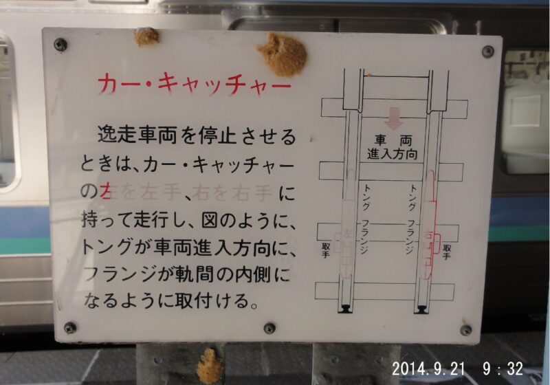 列車が逸走したとき、線路に設置して列車を止めるための道具みたいです。