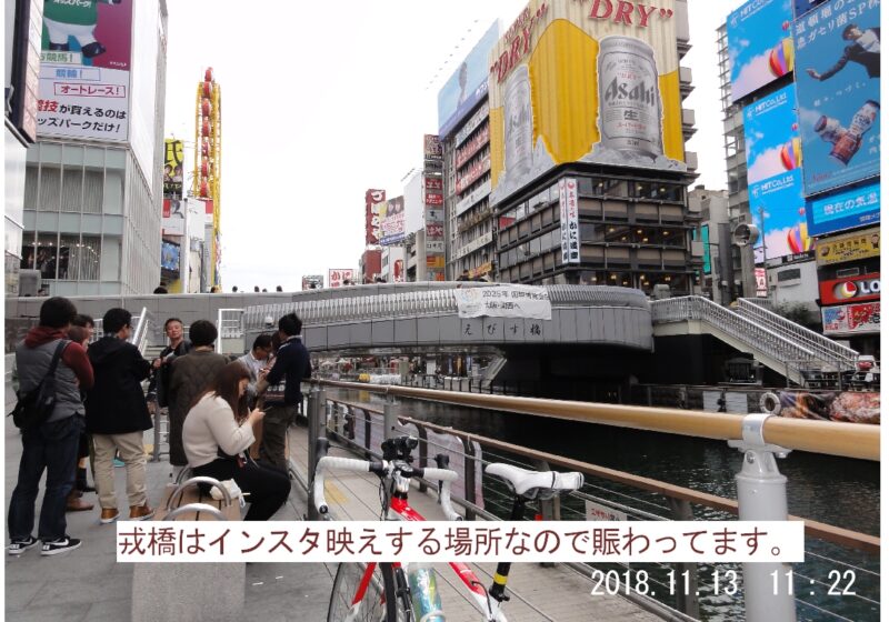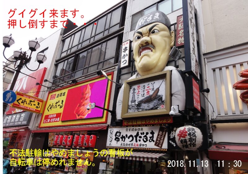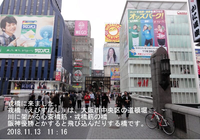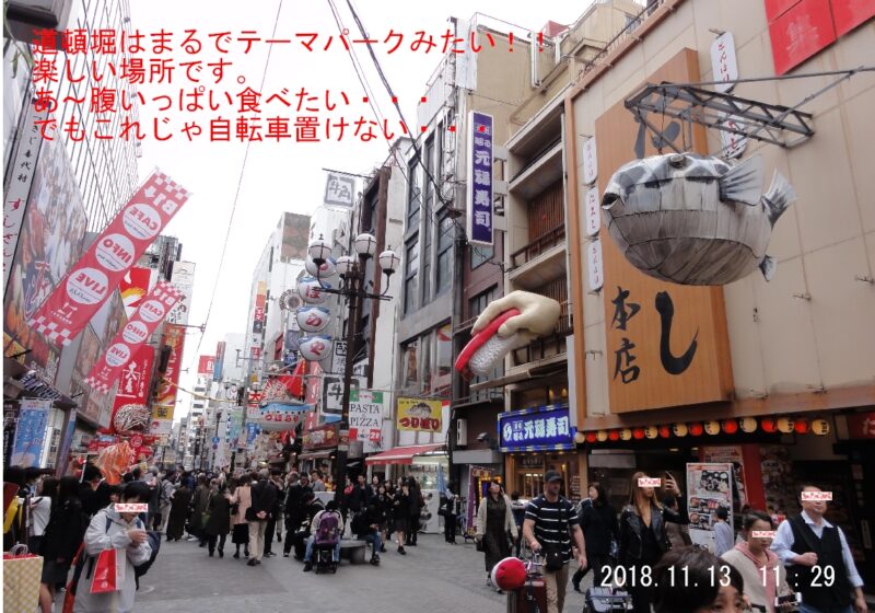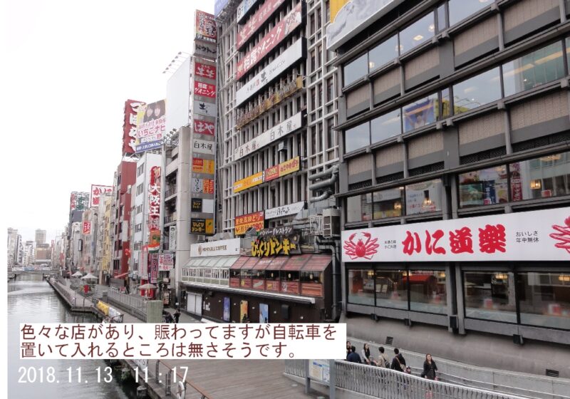 大阪で知ってる地名は難波だったので、難波方面に走っていたら道頓堀に着きました。