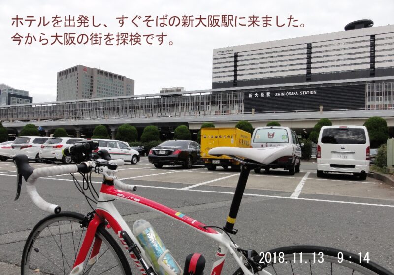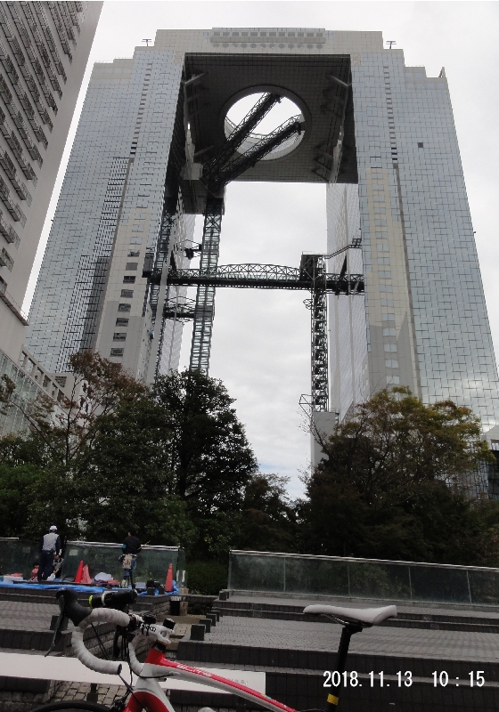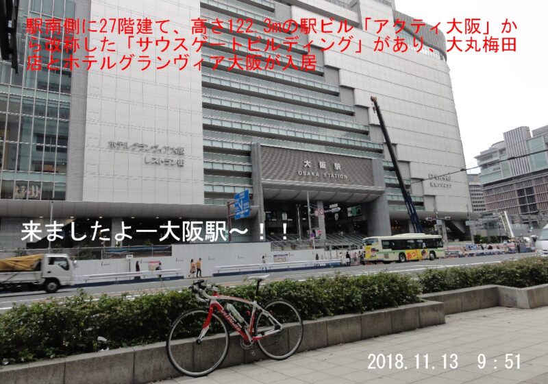 西の都、大都会大阪の駅前、大きなビルが並びますが今日は自転車なので外から眺めるだけです。