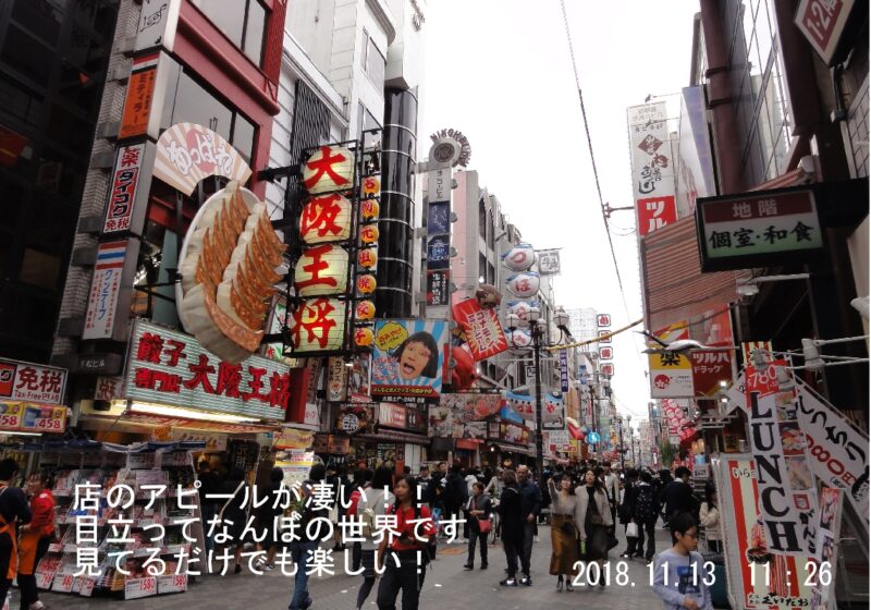 もう大阪の活気に飲み込まれそう、立体的な看板や店のアピールがこれでもかと押し寄せる。