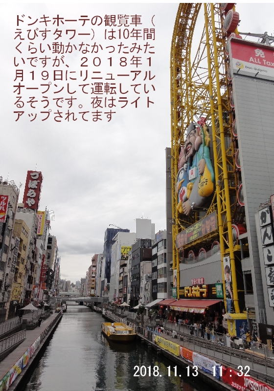 ドンキの観覧車も道頓堀のアイコンとなってます、えびすタワーは約15分で回る世界初の長円形観覧車なんだって