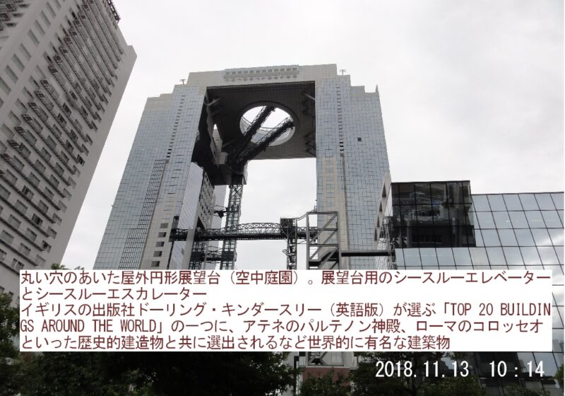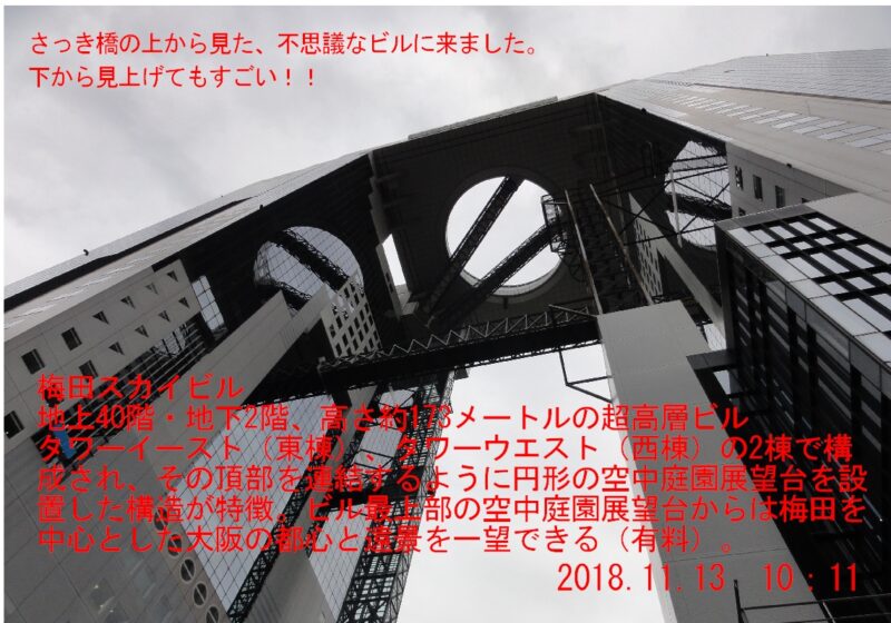 その後、ほんとに大阪に来て梅田スカイビルを見学しました。(その時の様子は京都・大阪の旅 3日目 ㉒ 夜の梅田スカイビルにあります)