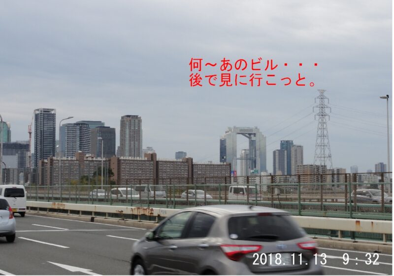 新淀川大橋を渡っているときに見た不思議な形のビルを見るために、移動しました。