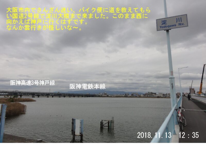 またしても道に迷いながらの旅が続きます、信号待ちのバイク便の人に道を聞いたりしてなんとか大阪脱出です、次の目的地である神戸を目指します。