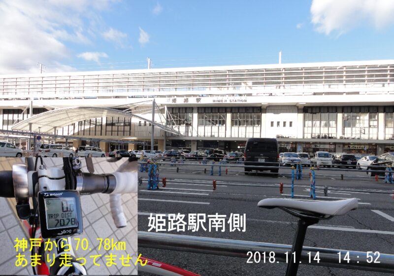 姫路駅の南口に来てみました、愛知県から見ると姫路はすごく遠いイメージだったけど、神戸からは70kmなんだ。初めて見る景色や土地なので、新鮮で楽しく走れました。