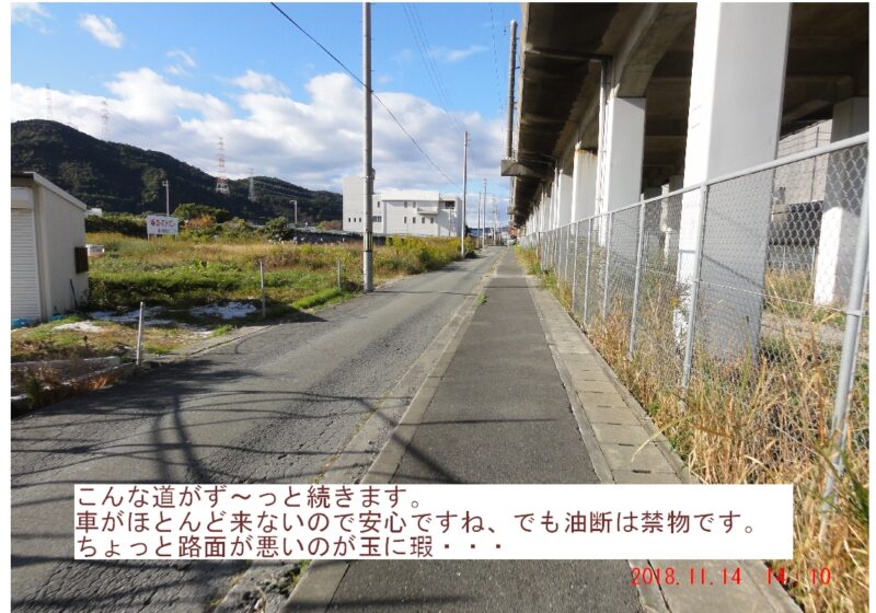 しかもラッキーなことに姫路明石自転車道と書いてあるので、これなら迷わず姫路に行けそうです。大阪のおばちゃんに聞くより確実です。