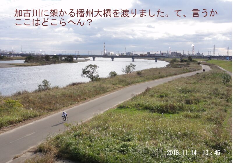 標識で加古川だと判りました。ニュースなどで、たまに地名が出てくるので知っていますが、自分にはあまりなじみがない土地です。