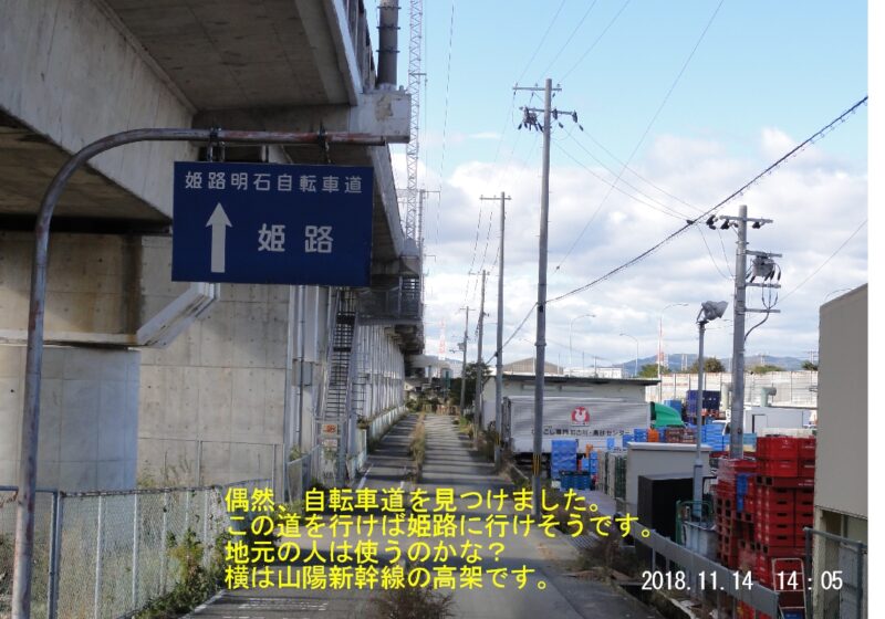 適当に姫路方面に走っていたら、自転車道の看板を見つけました。