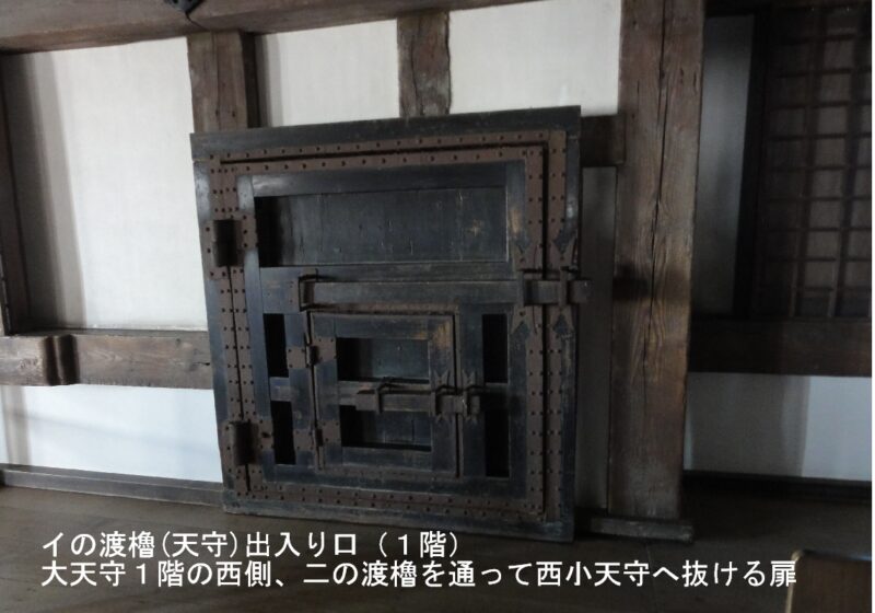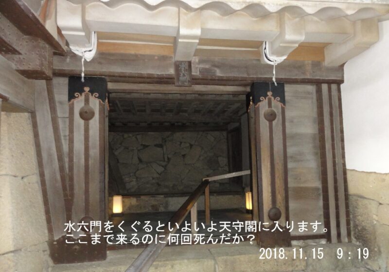 大天守と小天守を結ぶ渡櫓の下にある水の五門、鉄板で覆われ火に対する防御がなされ、この門が破られると落城の覚悟をすると昔聞いたことがある。(諸説ありです)