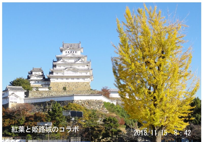 白い姫路城と黄色のイチョウのコラボレーション