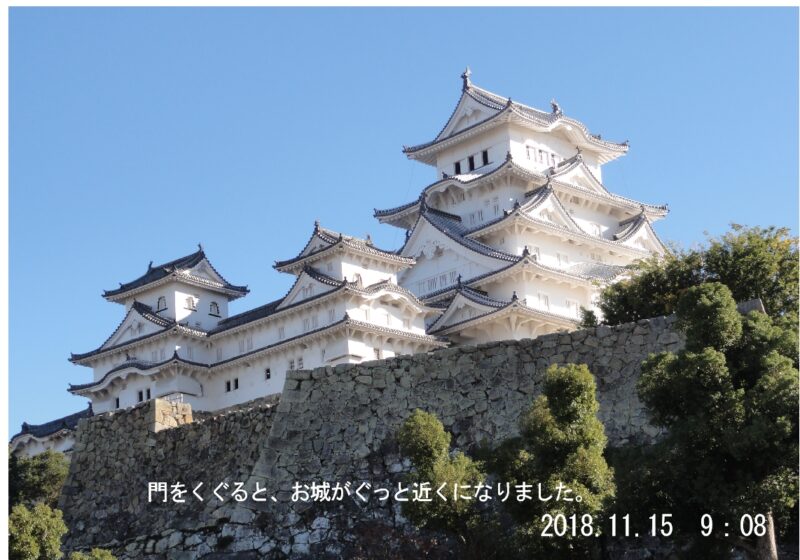 門をくぐっただけでこんなに近くに姫路城が見えてきました。