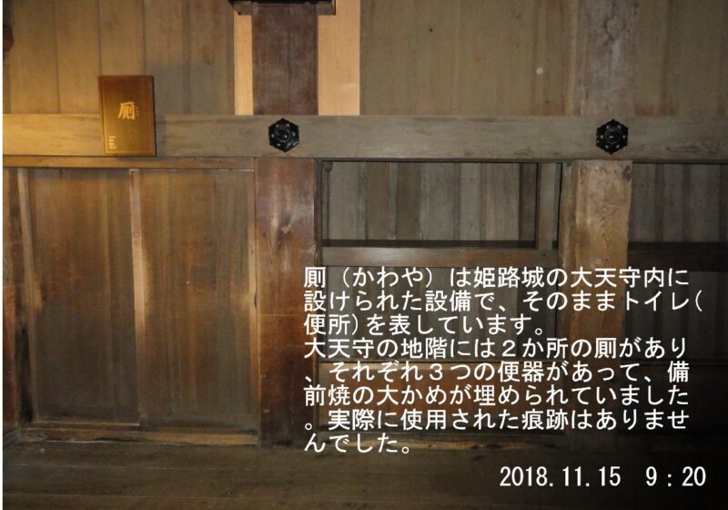 姫路城みたいに、天守に厠があるお城は、どちらかと言うと少数派みたいですが。