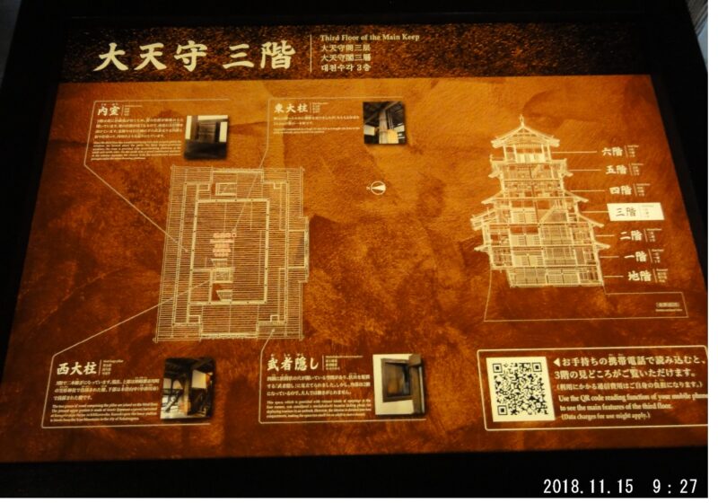 各階の平面図と立体図により、姫路城の説明と場所がわかるようになっている。