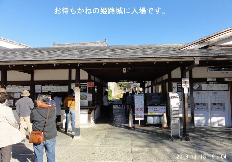 とうとう今回の旅も最終日となり、帰宅することになりますが、時間の許す限り姫路城を見学したいと思います。ホテルで朝食を済ませ姫路城に向かいます。