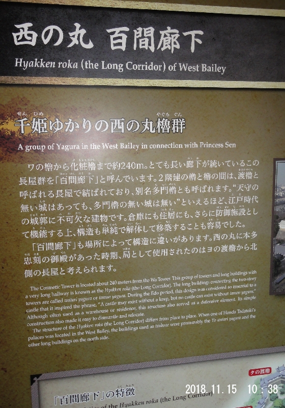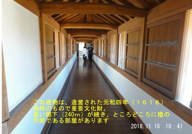 さすが徳川家の血を引く千姫を迎えるための施設です、広大な敷地と櫓を結ぶ長い廊下は防御の意味もあるとか。