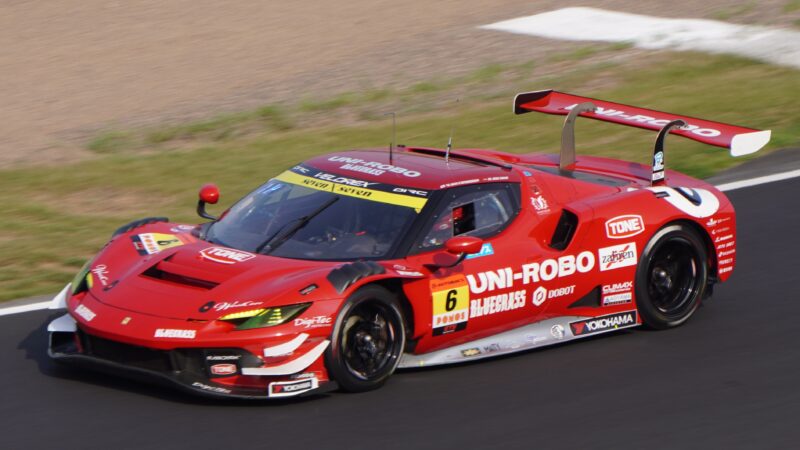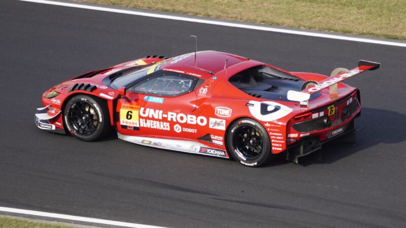 6号車 UNI-ROBO BLUEGRASS FERRARI/フェラーリ296 GT3 片山義章/ロベルト・メリ・ムンタン SW 57kg 1’57.708 バックミラーが小さく「がんばるぞ」ってしてるみたい