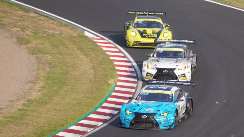 しかし、7号車 CARGUYのフェラーリ、5号車 マッハ車検のトヨタ86 MC、60号車 LM corsaのレクサスLC500 GTと上位陣が続きます。(2025.8.24 16:09)