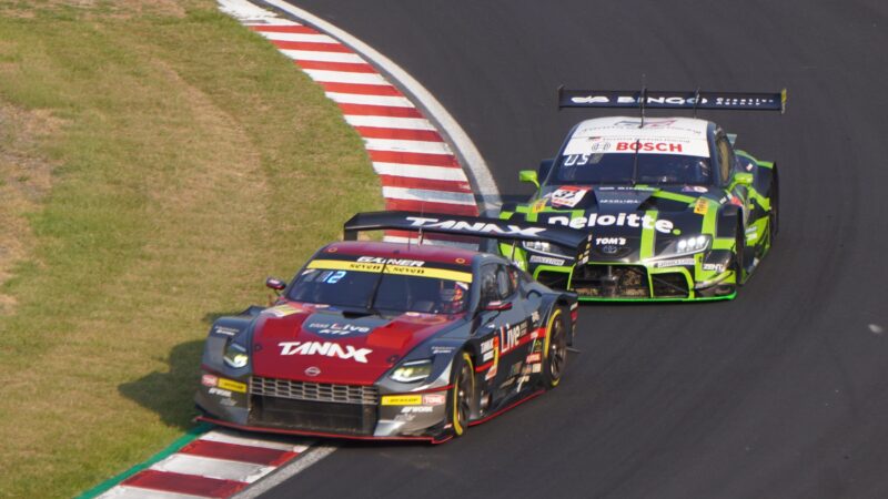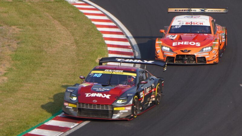 GT300の11号車 GAINERの日産フェアレディZ(ドライバー・大木一輝)、GT500の14号車 TGR TEAM ENEOS ROOKIEのトヨタGRスープラ(ドライバー・福住仁嶺)