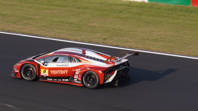 太陽が西に傾き、GTカーの影が次第に長くなってきましたが、路面温度は高くまだまだ熱いレースは続く。