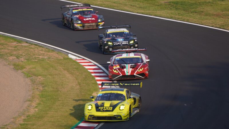 しかし、7号車 CARGUYのフェラーリ、5号車 マッハ車検のトヨタ86 MC、60号車 LM corsaのレクサスLC500 GTと上位陣が続きます。(2025.8.24 16:09)
