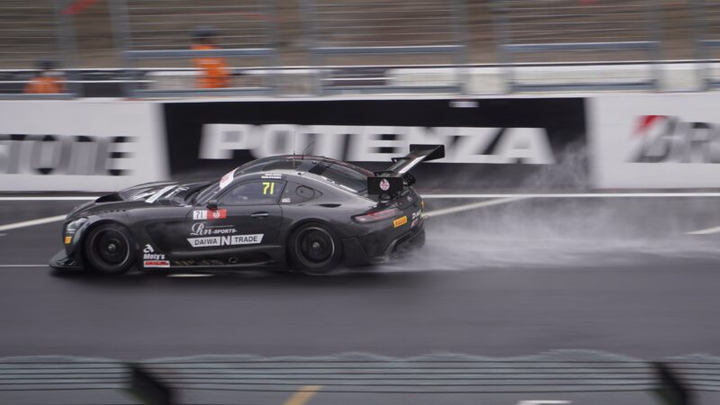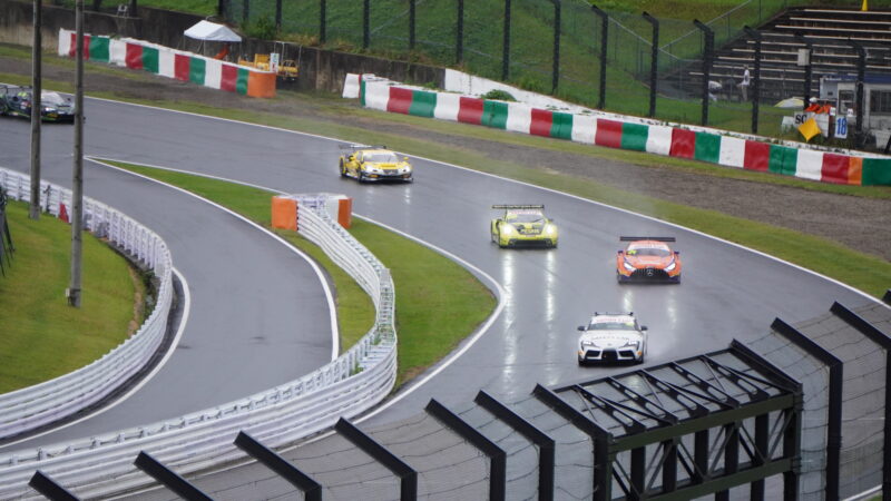 全車レインタイヤで走行するほど雨脚が強く、各車水煙(かっこよく言うとウォータースクリーン)を上げながら駆け抜けていきます。
