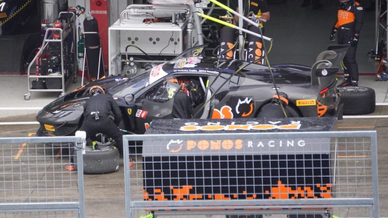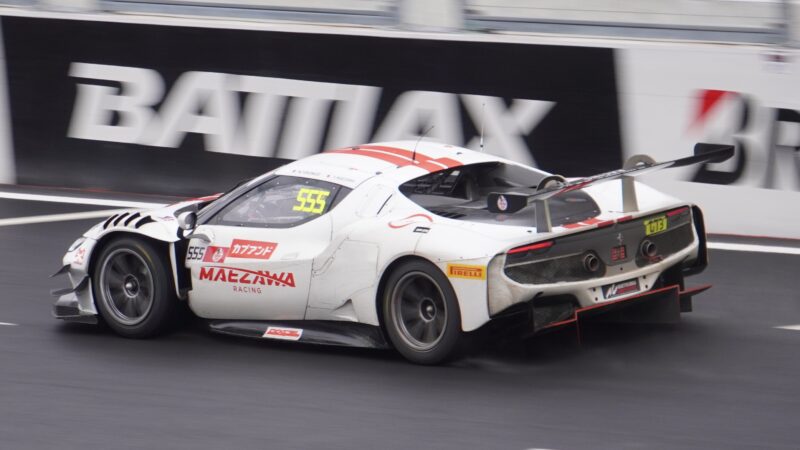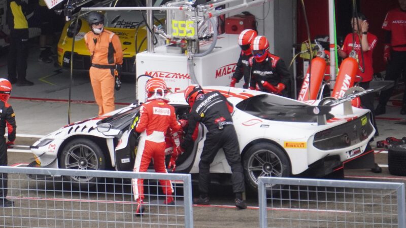 レース開始から25分を経過した頃からピットインが始まり、各チームタイヤ交換やドライバーチェンジなどピットがあわただしくなってきました。555号車 MAEZAWA RACING フェラーリ296 GT3(2025.9.13 14:23)