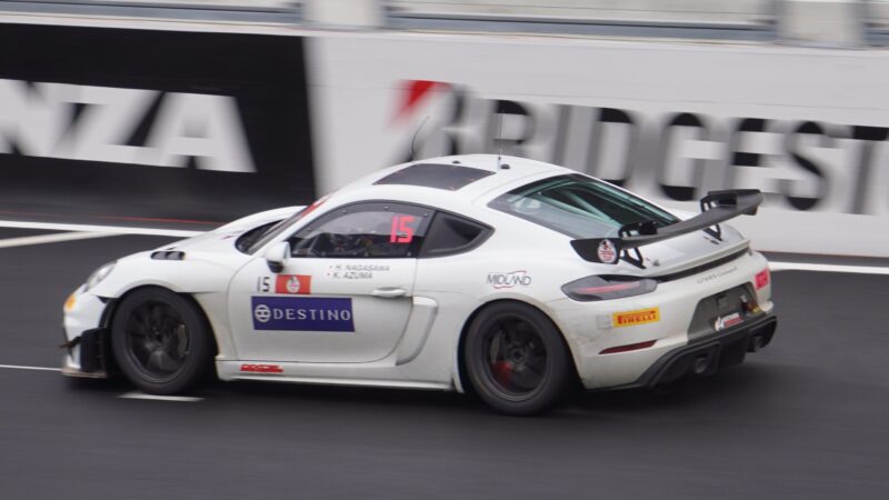 15号車(GT4/Am)Destino with SUNRISE BLVD. ポルシェ718ケイマンGT4 RS CS(東浩平/長澤宏昭)(2025.9.13 14:44)
