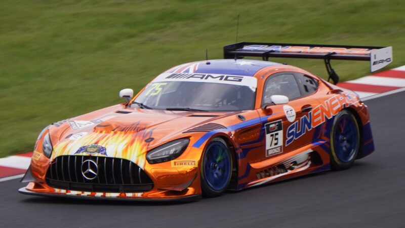 75号車(Bronze/USA)75エクスプレス メルセデスAMG GT3エボ(ケニー・ハブル/ヤニック・メトラー/ドミニク・バウマン)ピット内の車両は撮れなかったので走行中の写真を掲載。2025 IGTC第4戦鈴鹿1000km出場車両