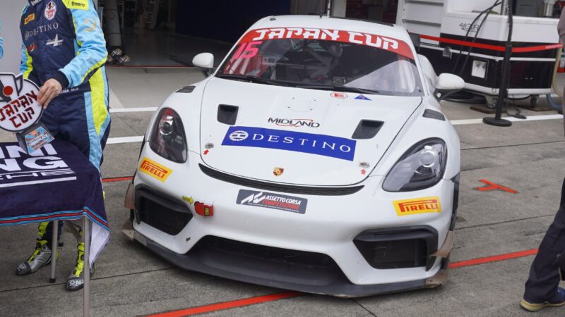 15号車(GT4 Am)Destino with SUNRISE BLVD. ポルシェ718ケイマンGT4 RS CS 東浩平/長澤宏昭(SROジャパンカップ出場車両)