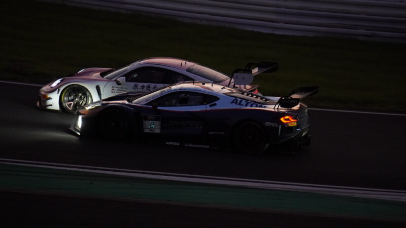 ひゃーカッコイイ・・・夜を切り裂いて限界を攻める2台のGTカー