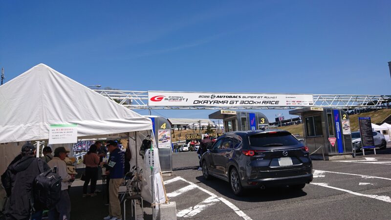 当日、名古屋の友人宅を6時30分に出発し、高速道路を走り岡山国際サーキットに4時間ほどで到着しましたが、駐車場はサーキットから離れた場所にあるため場外の駐車場に車を停めて、シャトルバス乗り場に向かいます。(2026.4.12 10:59)