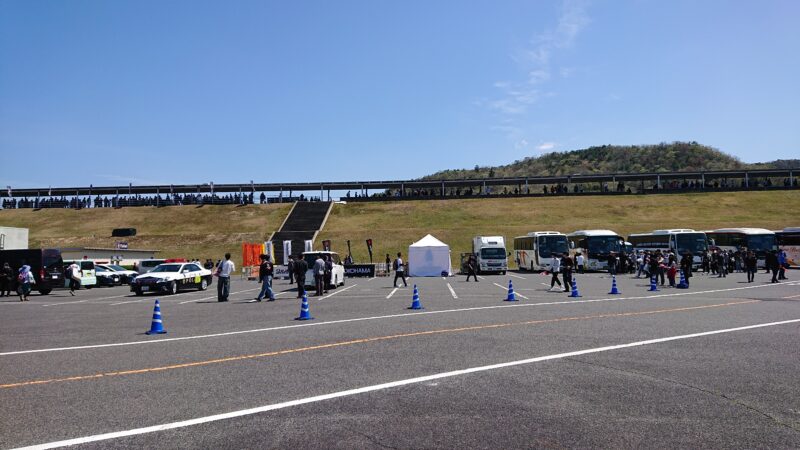 昨年来た時は、サーキットから14km離れた臨時駐車場を案内され、駐車場から満員のシャトルバスに乗りサーキットまで移動しました、そのことを思えば今年は比較的近い場所に駐車出来たので、随分楽に移動できそうです。(2026.4.12 11:01)