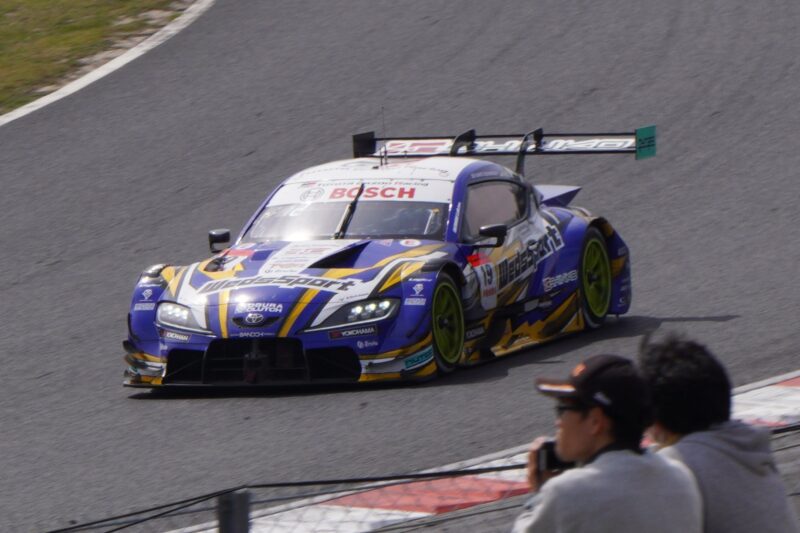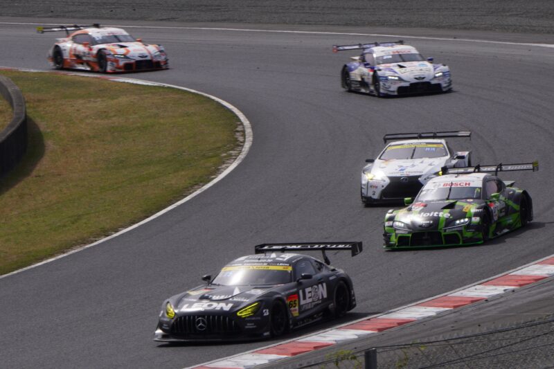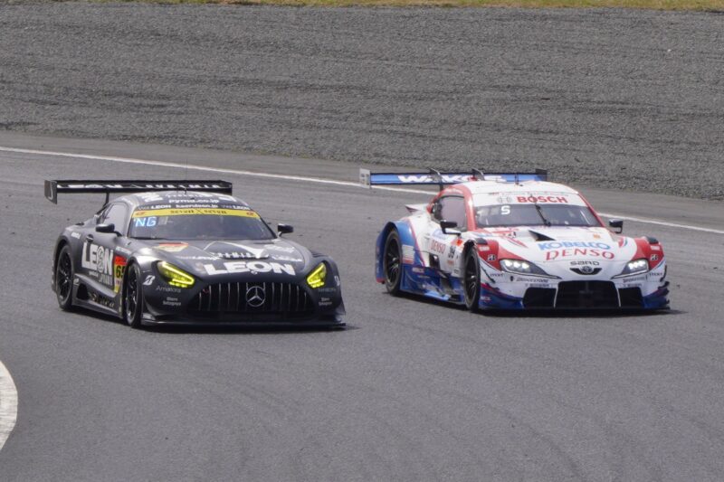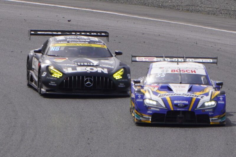 19号車(GT500)TGR TEAM WedsSport BANDOHの TOYOTA GR Supra GT500(阪口 晴南)、65号車K2 R&D LEON RACINGのMercedes AMG GT3(蒲生 尚弥)